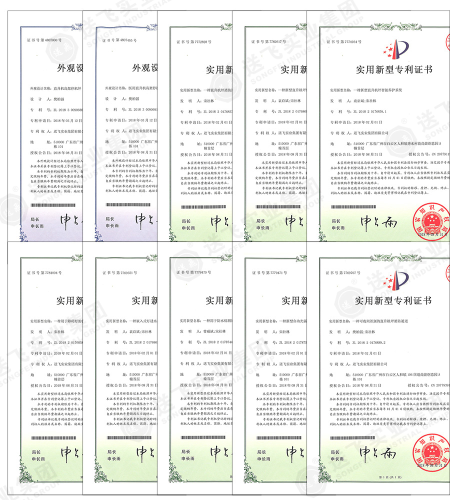 2018年9月10日,我公司(送飛實業(yè)集團)已通過國家知識產(chǎn)權(quán)局的審批,再次獲得實用新型專利8項授權(quán),外觀專利2項授權(quán)。