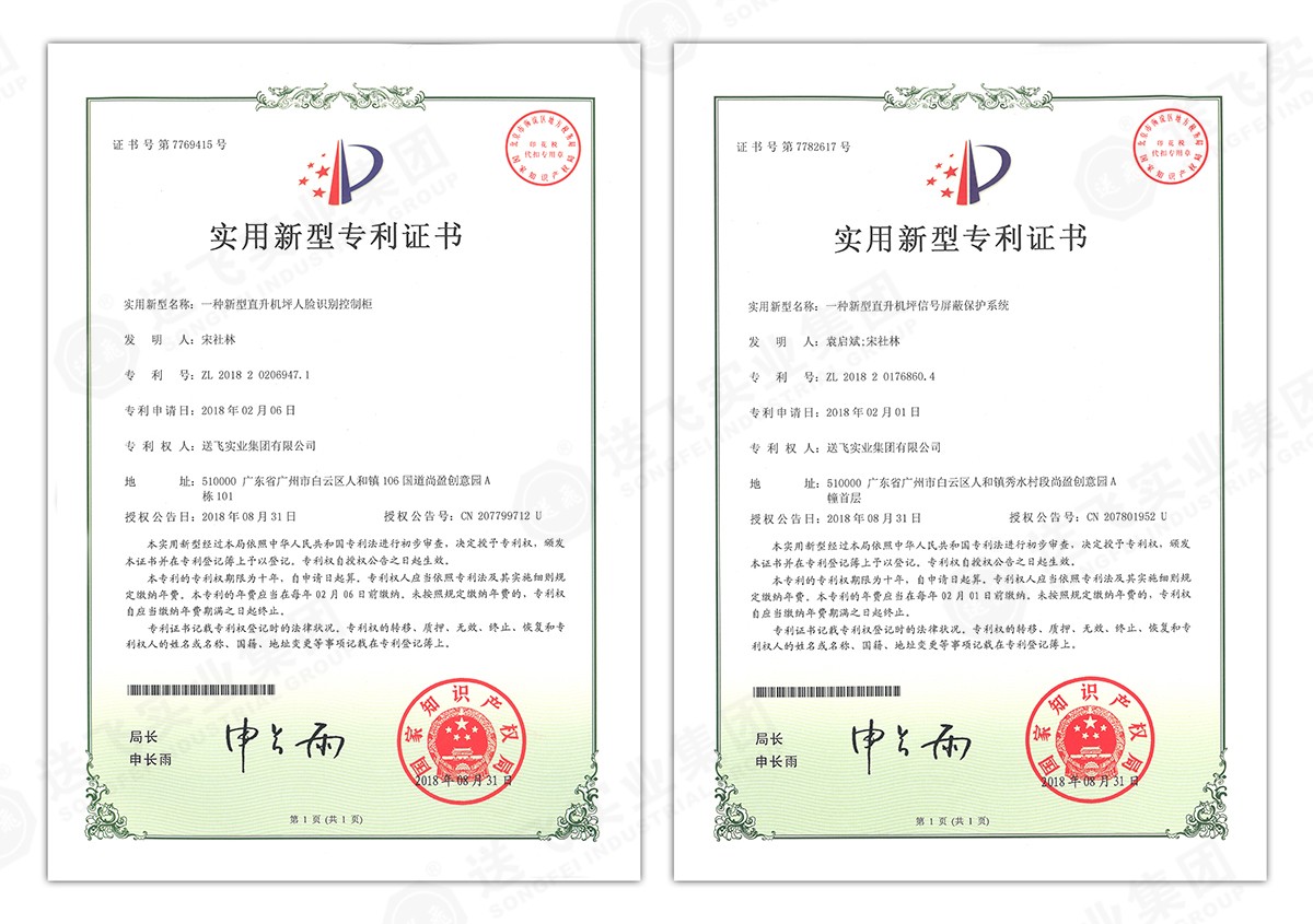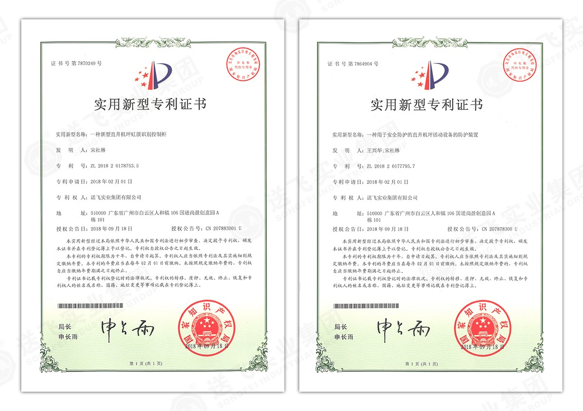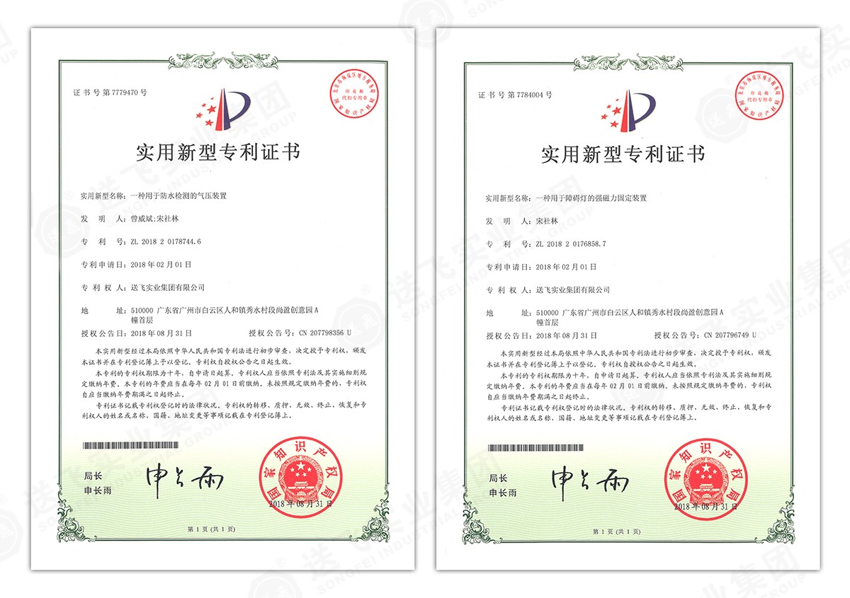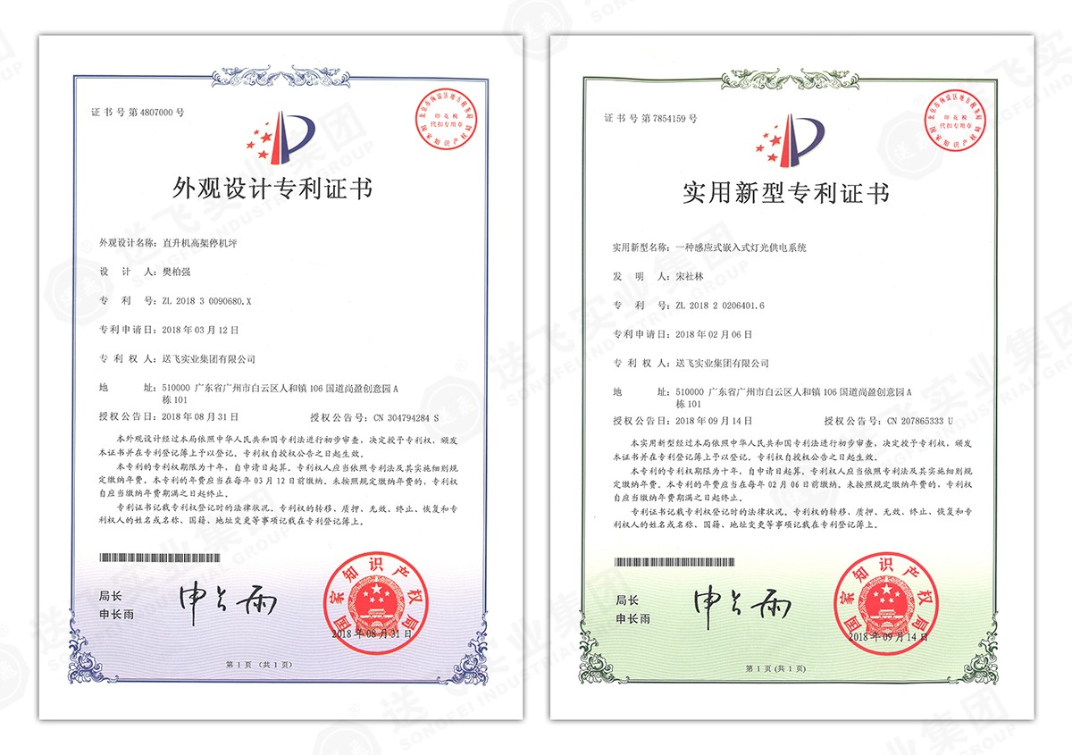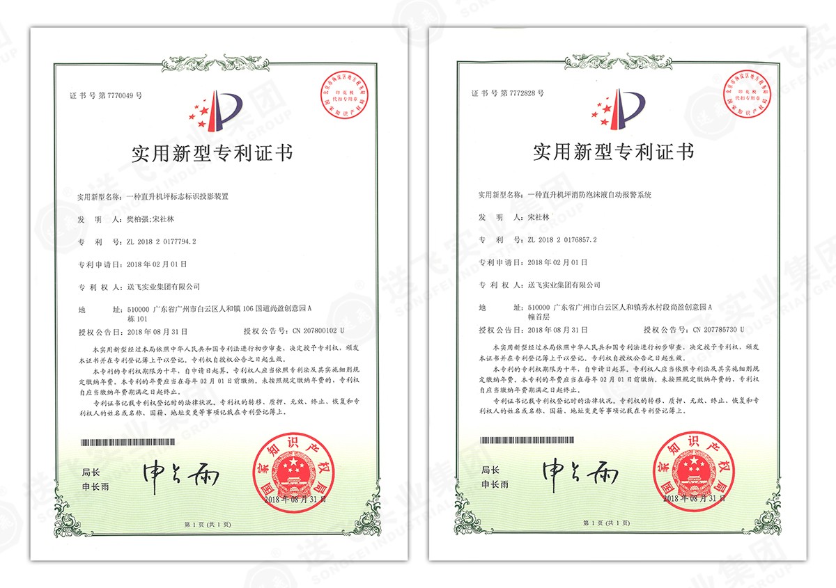 此次新下證專利有22個(gè),其中發(fā)明專利2個(gè),實(shí)用新型專利17個(gè),外觀設(shè)計(jì)專利3個(gè)。專利技術(shù)涵蓋航空障礙燈、直升機(jī)坪等多項(xiàng)產(chǎn)品和業(yè)務(wù)。目前,送飛成功申請(qǐng)專利逾百項(xiàng),填補(bǔ)了行業(yè)多項(xiàng)技術(shù)空白。